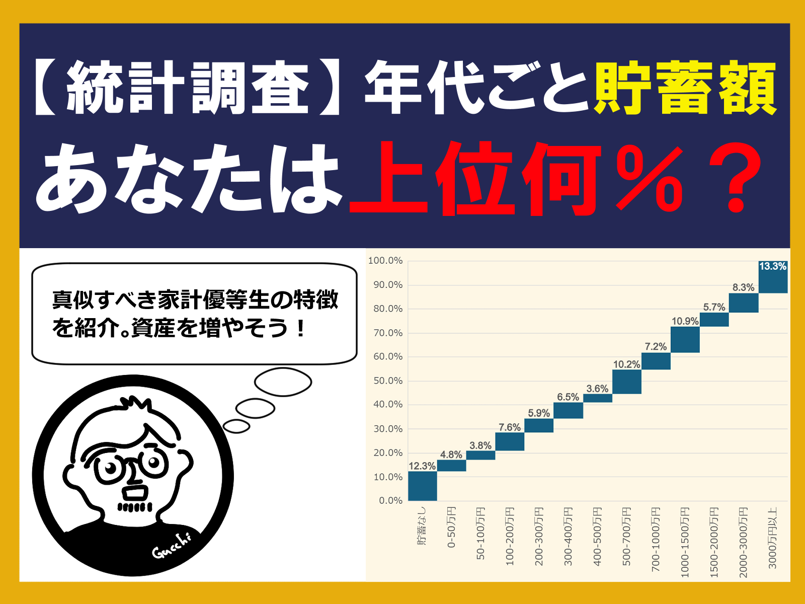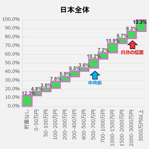 ちなみに私の総資産は2400万円ほどなのでざっくり上位20%くらいの位置にいるものと考えられます。