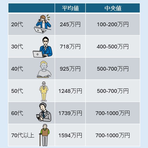 ※中央値は、日本人全員を順番に並べたときにちょうど真ん中の人がどのくらいの貯蓄額を持っているかを表しています。