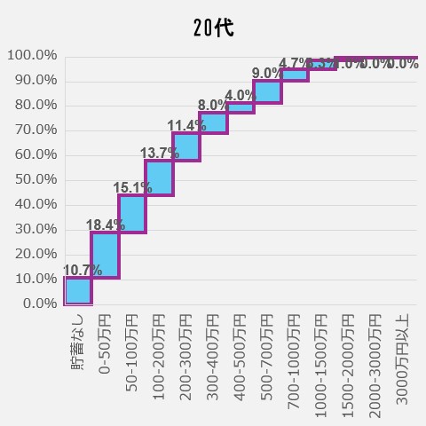 <20代の貯蓄額ごと人口割合>