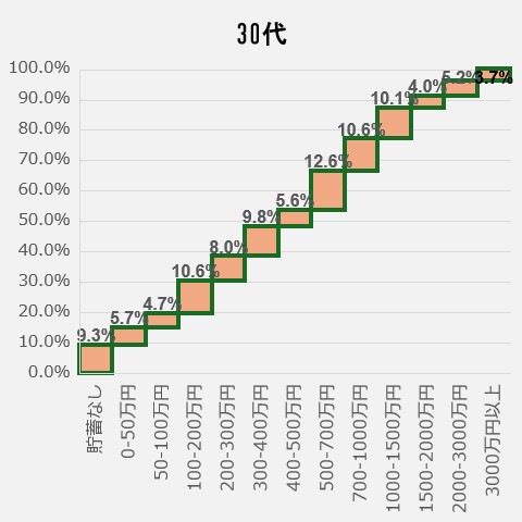 <30代の貯蓄額ごと人口割合>