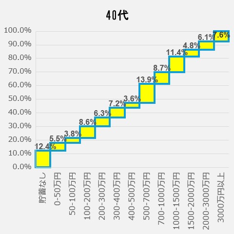 <40代の貯蓄額ごと人口割合>