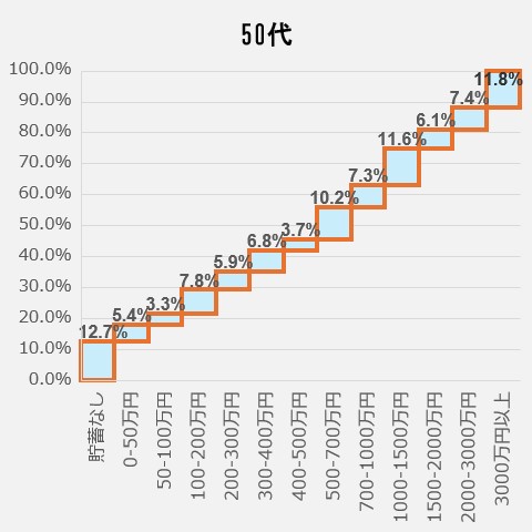 <50代の貯蓄額ごと人口割合>