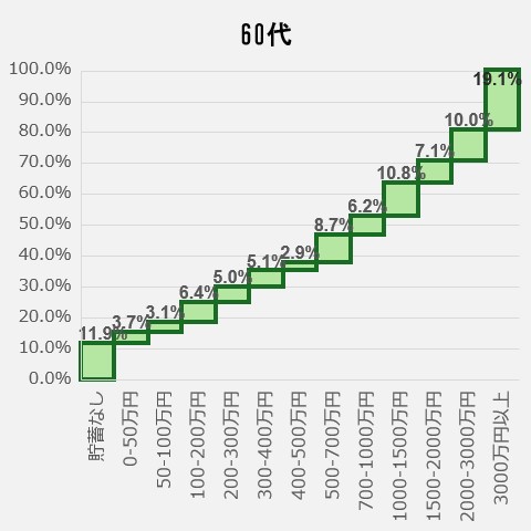 <60代の貯蓄額ごと人口割合>