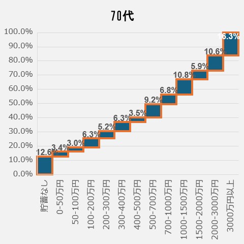 <70代の貯蓄額ごと人口割合>