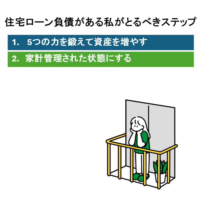 偉そうに語っている私ですが、2024年に住宅ローンで4600万円の戸建を購入した借金ホルダーです。当時の私はあまり家計のことを深く考えずに家を購入したのですが、お金の観点で振り返るとやはり人にはお勧めできないと考えています。しかし後悔先に立たず。私がするべきなのは、①早く返済する、②資産と借金のバランスを適正な状態(家計管理された状態)、のいずれかです。私は②の家計管理された状態を目指すことに決めていて、まずは一刻も早く借金と資産のバランスを1:1以上にするために資産形成に全力で取り組んでいます。