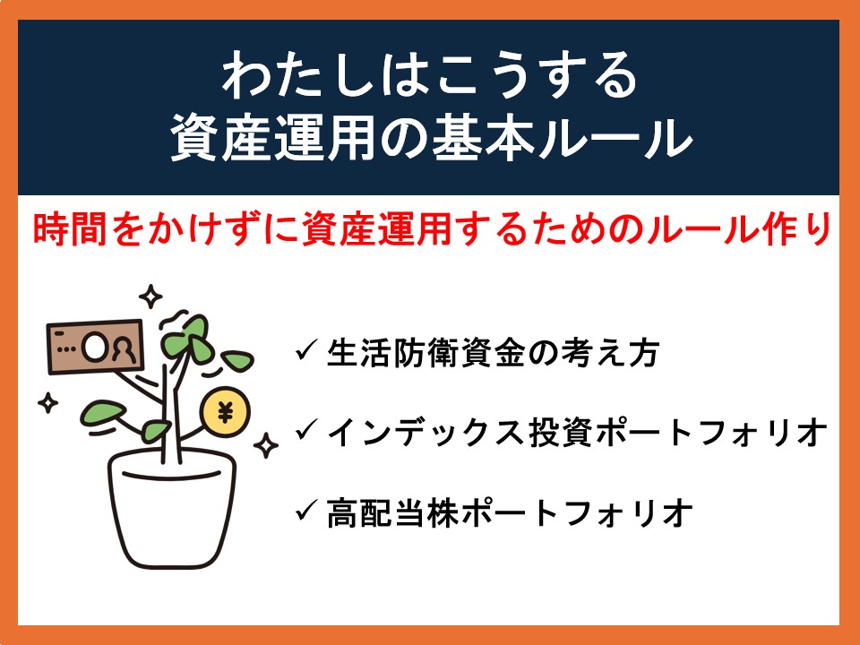 今回は私の資産運用方針についてご紹介しました。資産運用のルールは人それぞれ自分に合う方法を作るものですが、共通して大事なことは長く続けられる仕組みであることです。日々の暮らしを大切にするためにも、時間をかけずに続けられる資産運用ルールづくりを進めてみてください。その際にこの記事を参考にしてみていただけると嬉しいです。ブックマーク、コメントもよかったらお願いします。