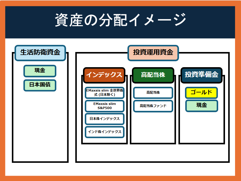 - 余剰資金で高配当株または高配当株ファンドを購入し高配当株ポートフォリオを構築する。